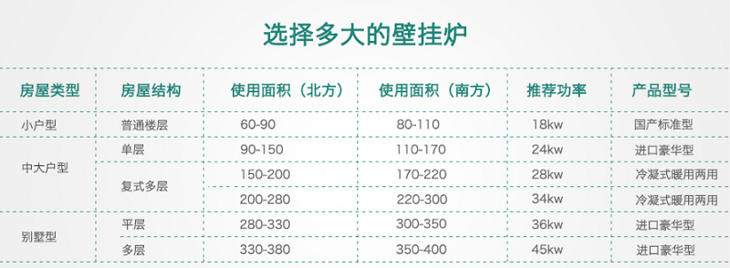 確定了采暖方式,下一步就要確定我到底需要多大的壁掛爐,根據(jù)家中的采暖面積和熱水需求,基本可以找出自己需要的壁掛爐大小。