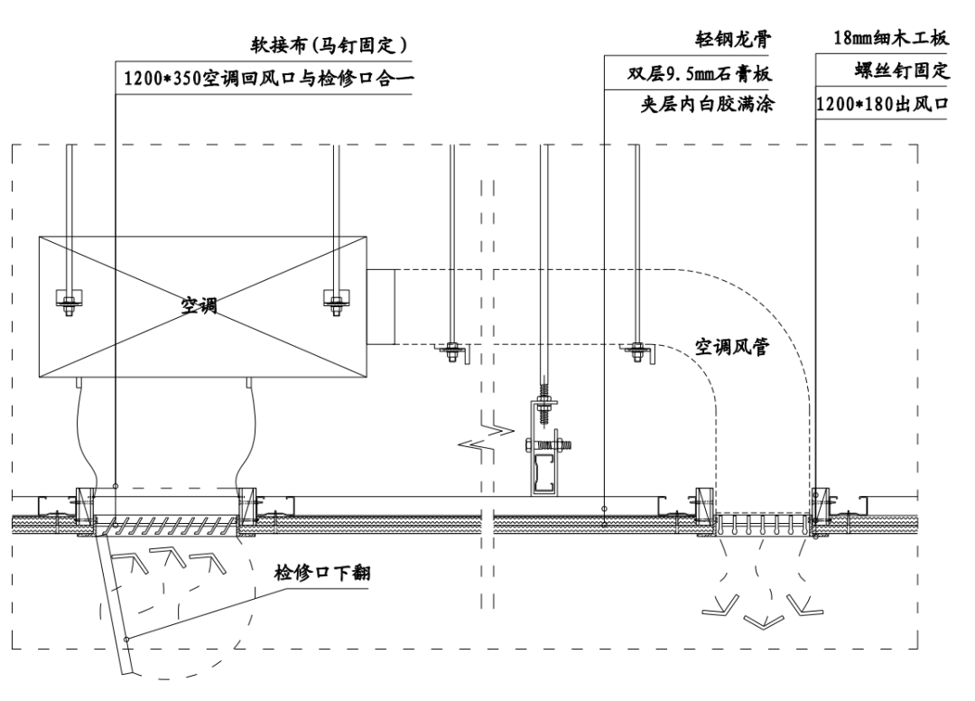 空調(diào)回風口應加長與檢修口二合為一。